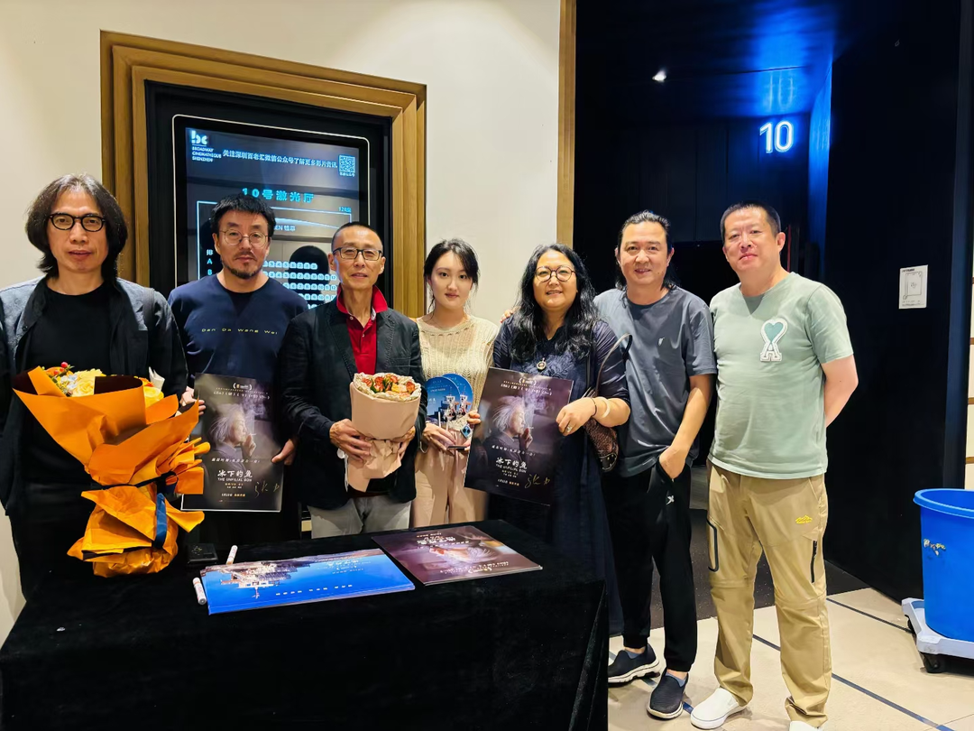 张力(左三)在深圳点映结束后与观众合影。