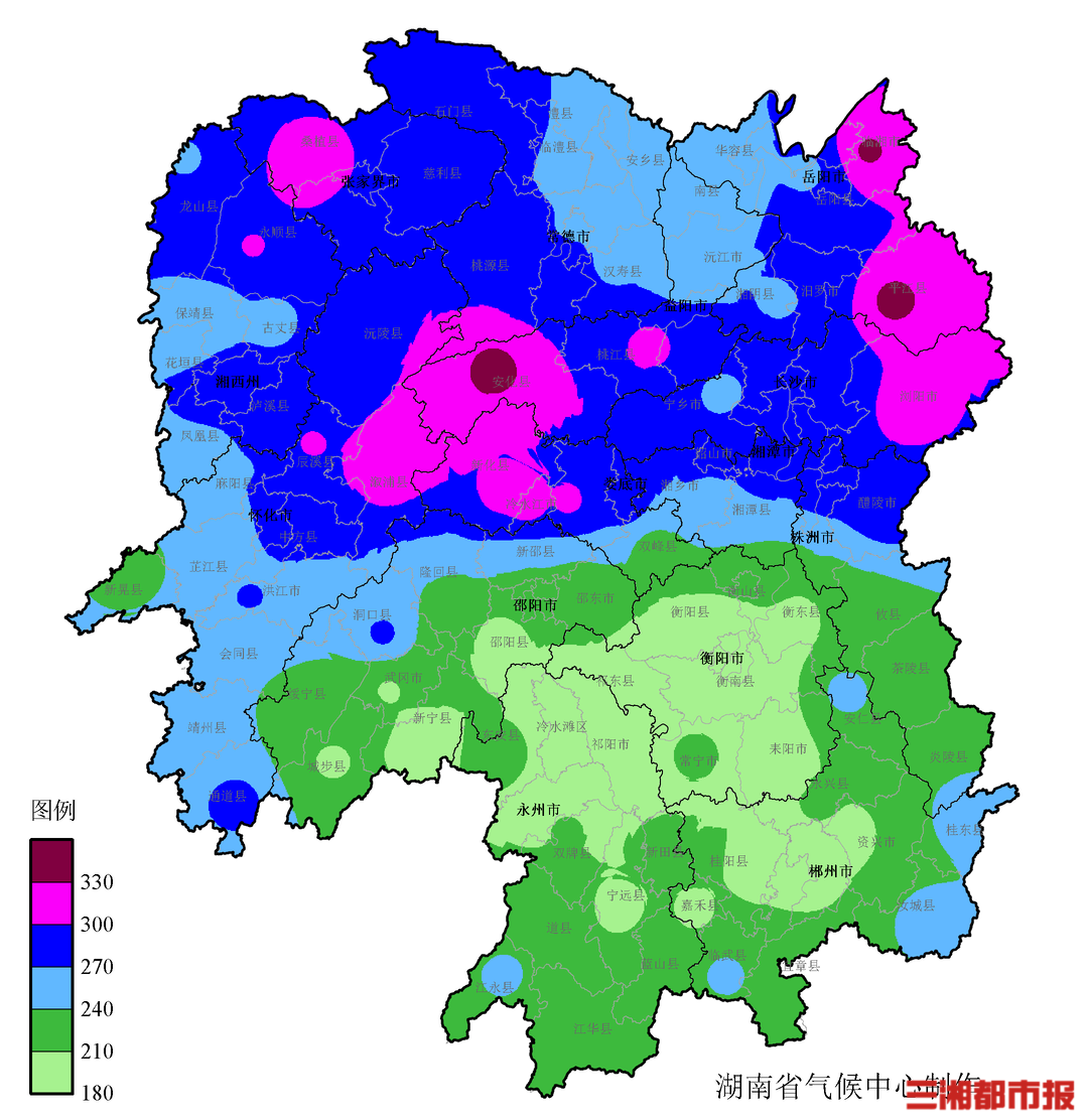 “预计6月降雨量邵阳大部、衡阳、株洲中南部、郴州、永州为180~240毫米,其余大部分地区为240~330毫米。”省气候中心有关专家介绍,和常年同期相比,全省大部分地区偏多,其中湘中、湘北偏多2~5成。\