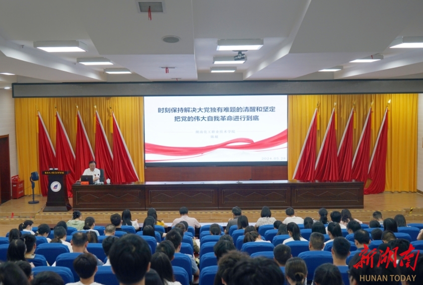 湖南日报·新湖南客户端5月31日讯(通讯员 陈敏 周钰)5月28日下午,在学校图书馆一楼二号报告厅,湖南化工职业技术学院党委书记陈超教授以《时刻保持解决大党独有难题的清醒和坚定,把党的伟大自我革命进行到底》为题,为机械工程学院、马克思主义学院师生党员上了一堂深刻而生动的党纪学习教育专题党课。