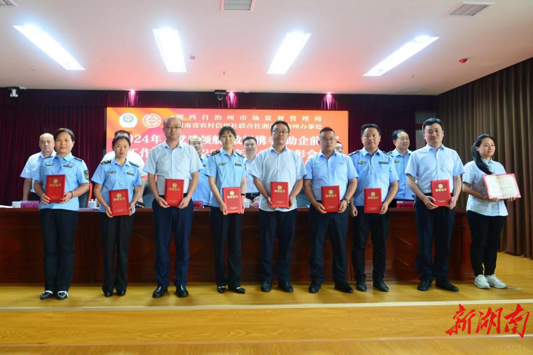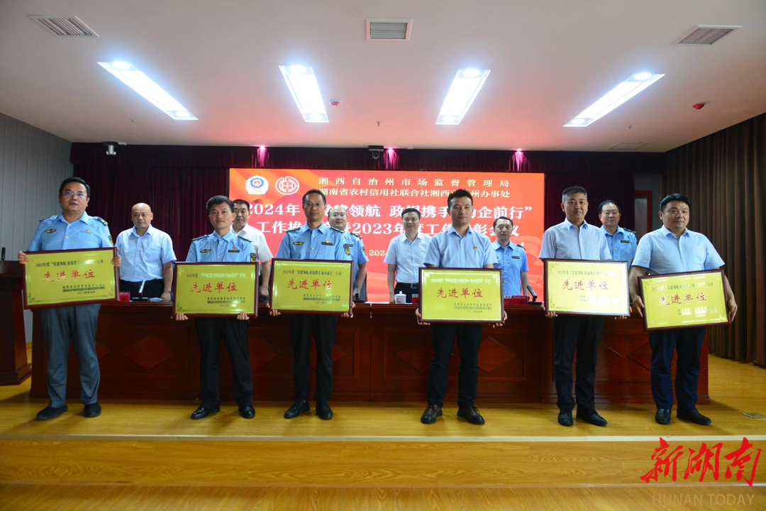 新湖南客户端5月31日讯(通讯员 向朝森 张海艳)5月31日,湘西土家族苗族自治州市场监督管理局联合省农信联社湘西办事处,召开2024年“党建领航 政银携手 助企前行”工作推进会暨2023年度工作表彰会议。