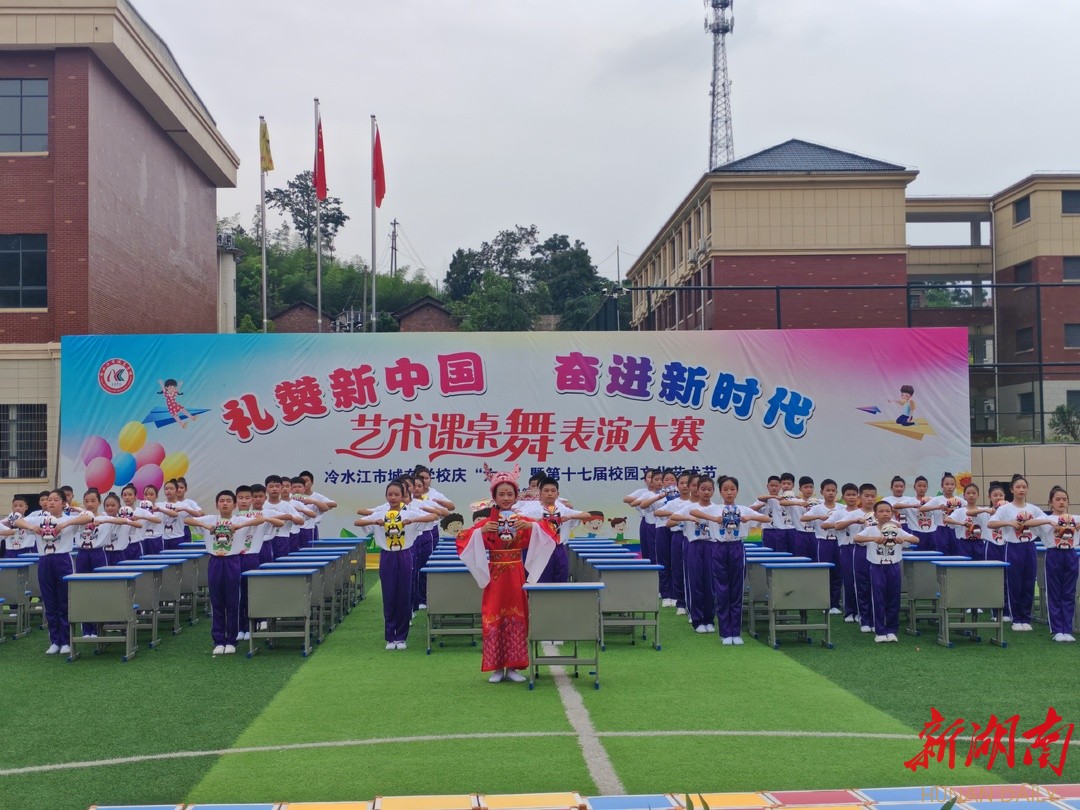 为进一步落实“双减”政策,促进学生德智体美劳全面发展,打造多彩灵动校园,5月31日下午,冷水江市城东学校在学校运动场举行了“礼赞新中国 奋进新时代”艺术课桌舞表演大赛。