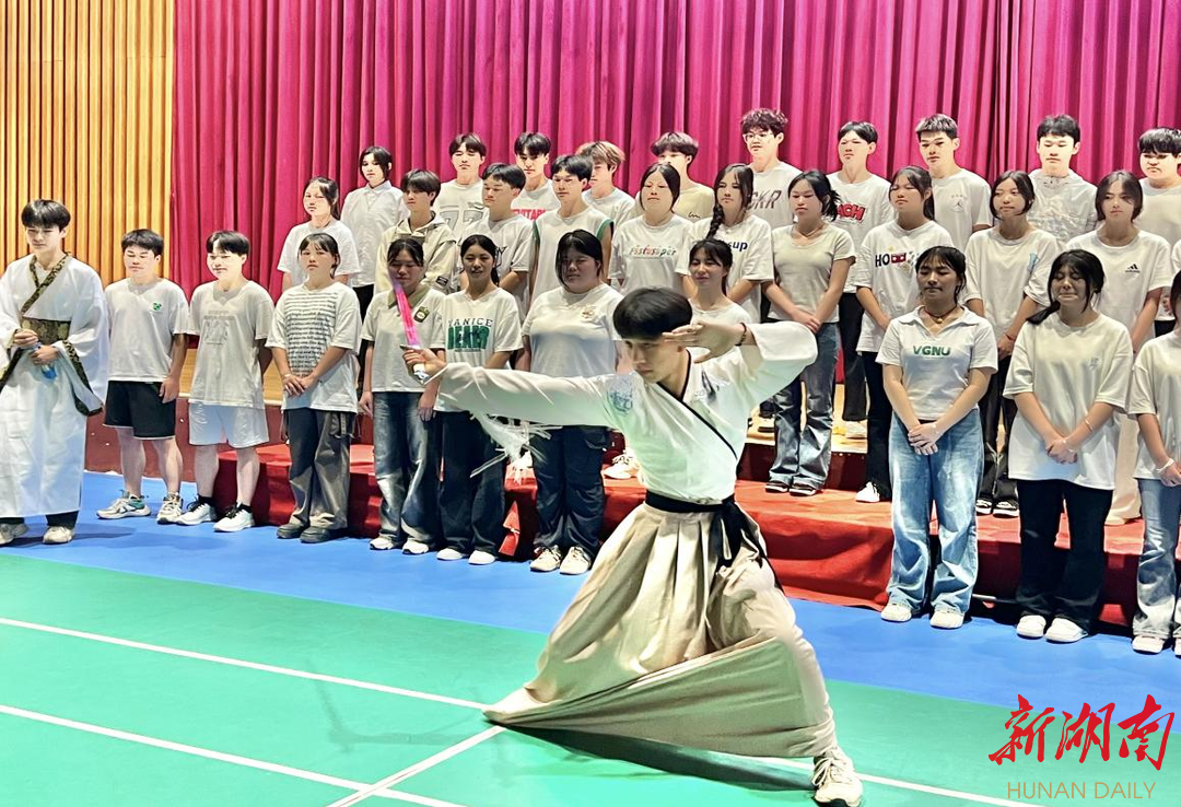 旅游专业的学生给大家带来了《山水画卷·茶岭相见》的舞蹈,将文化经典与本地特色相结合,镌刻了烟雨江南的浪漫与诗意。