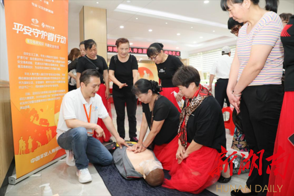 同时,为了提升长者应急安全急救意识,平安守护者团队志愿者在现场设置专区,为长者详细讲解心肺复苏(CPR)操作流程、注意事项,以及海姆立克急救法等日常生活中的应急救护知识,得到了社区工作人员和长者的高度认可。