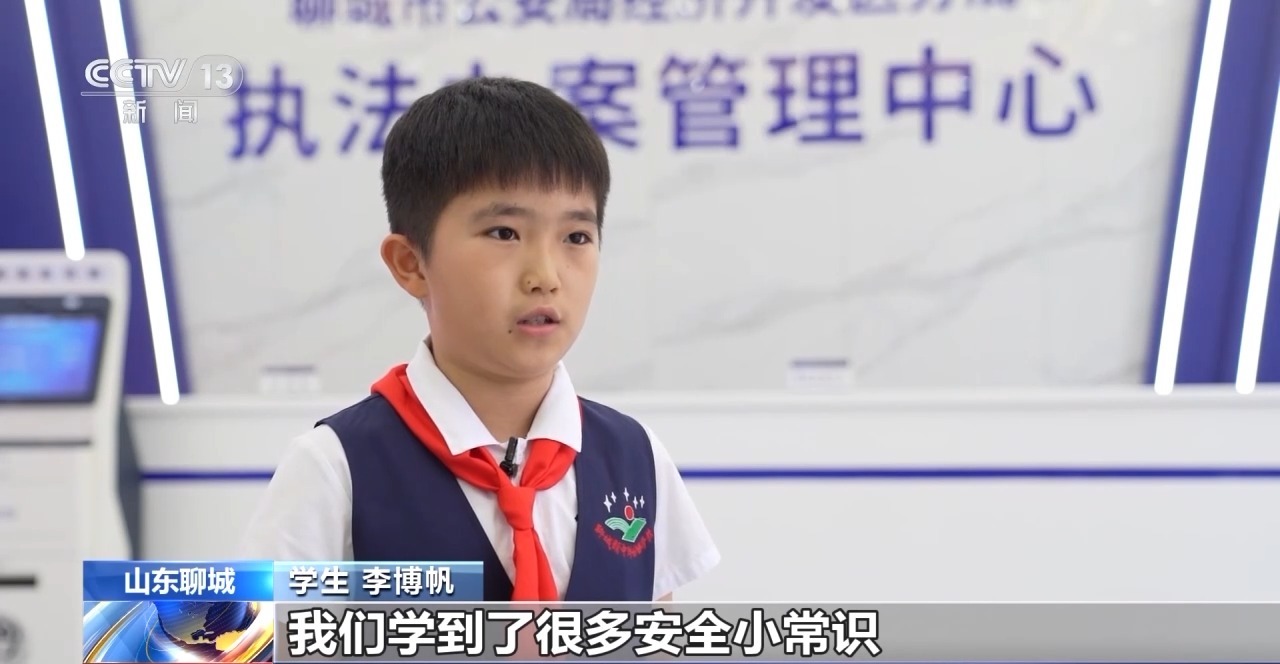 在山东省聊城市公安局开发区分局,同学们在民警的带领下,现场参观、亲身体验、互动参与,了解警察的工作以及各种安全小常识,民警还给孩子们带来了生动的法治宣传课,给他们进行普法启蒙。