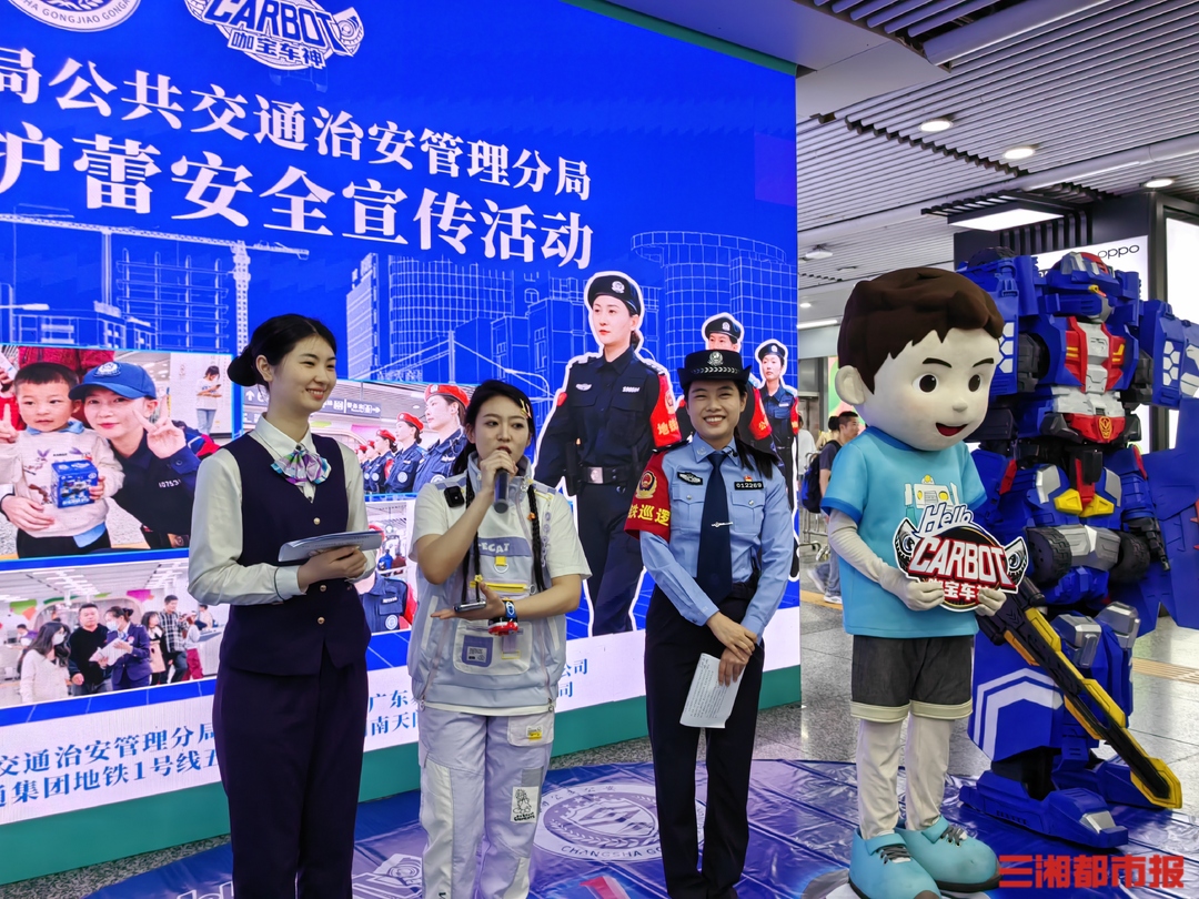 三湘都市报·新湖南客户端6月1日讯(文/视频 全媒体记者 王智芳 通讯员 邵青)“小金鱼能不能带上地铁?”“我今年6岁了,大宝宝了,能不能单独乘坐地铁?”……6月1日,为了提高儿童的公共交通安全意识和自我保护能力,长沙市公安局公共交通治安管理分局在长沙各地铁线举办“六一”护蕾安全宣传活动。
