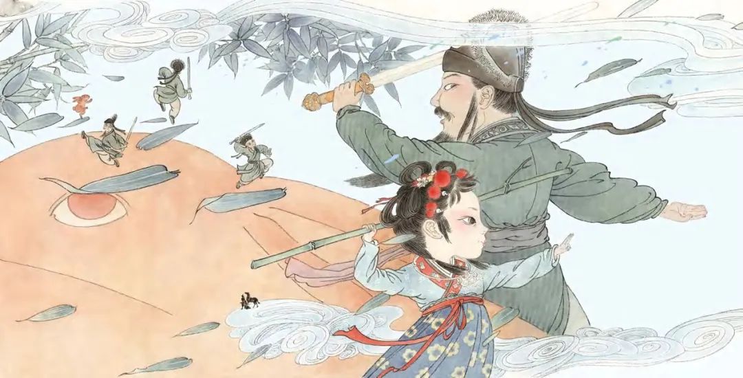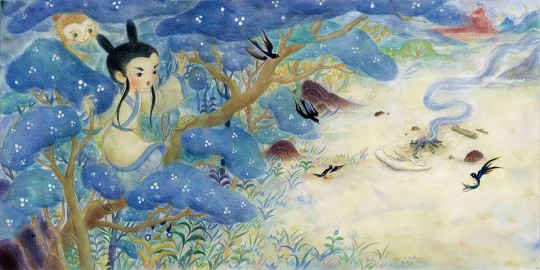 此次展览根据场地的情况,精选了其中80件作品,分为“童思”“童趣”“童心”三个部分展出,以原画、图书、动画短片、场景空间等形式呈现展览的精彩内容。《花木兰》《七品芝麻官》《海龙王娶新娘》《江南礼物:定胜糕》等作品广泛取材于中国民间故事、神话传说、戏曲戏剧和传统民俗等,蕴含着中华民族的美好品德和精神价值;《鹿衣少年》《我的妈妈》《蝶》等从敦煌壁画、淮阳泥泥狗、绢本工笔、刺绣等中国优秀传统艺术中吸取造型元素,呈现出浓郁的中国风;不少青年作者把目光投向当代中国日新月异的发展变化,如《大国重器·出发!去深潜》《极地·远天之南》等,不仅让儿童得到科学和历史知识的普及,更滋养爱国情。