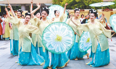 中国丝绸博物馆举办“国丝汉服节”快闪活动。