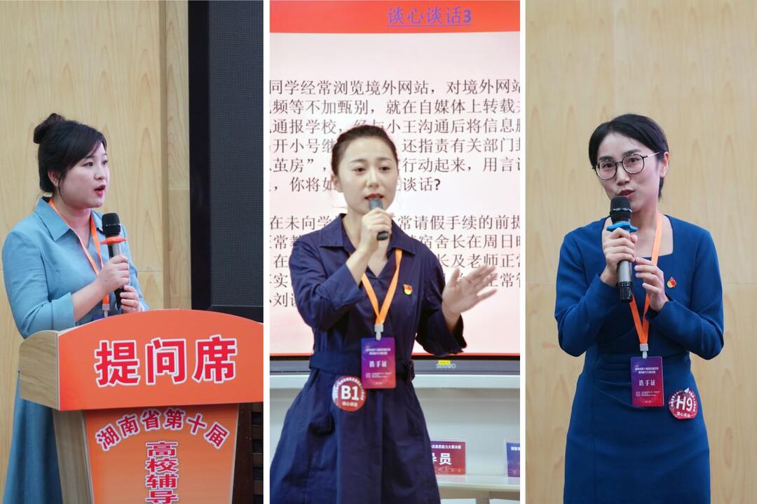 经过复赛角逐,本专科各20所院校,共72名辅导员在决赛中合并竞技。通过“基础知识测试”“谈心谈话”“案例研讨”三个阶段的激烈比拼,全面考察辅导员综合素质,最终湖南商务职院曹璐以高职高专组第1名的佳绩获大赛特等奖,夏瑞霞获二等奖,团体位列第三,获得季军。