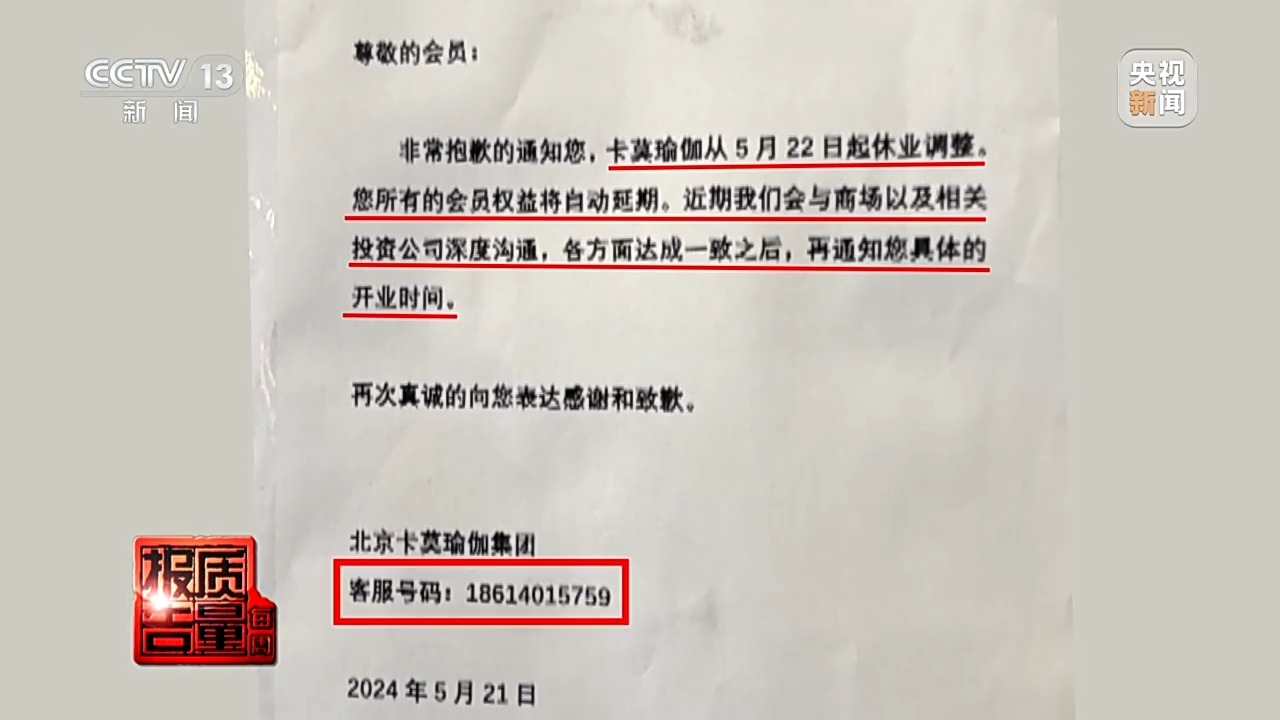 随即,记者走访调查了北京多家卡莫瑜伽馆,这些门店几乎都是大门紧锁,店门口都张贴着一张写有同样内容的通知,公布的联系电话也同样都是无人接听。