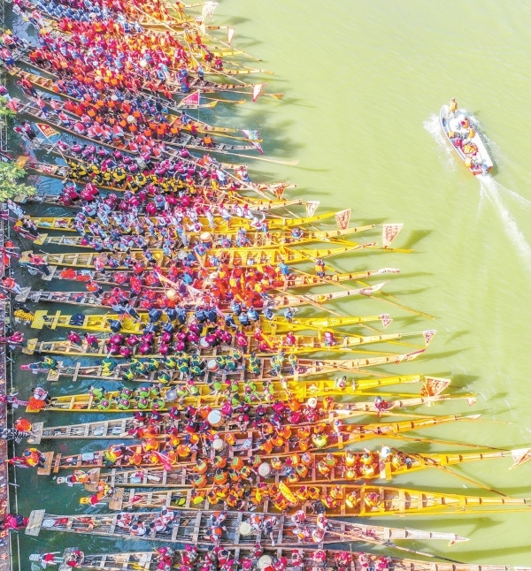 共有212艘龙舟参赛,创“参赛人数最多的龙舟赛(团队)”吉尼斯世界纪录