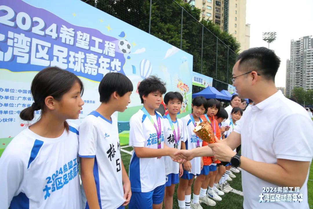 5月22日-5月26日,2024希望工程·大湾区足球嘉年华公益活动在广东省中山市举办。本次活动由中国青基会主办,广东省青少年体育联合会、共青团中山市委员会承办,广东省青少年发展基金会协办,中国足球发展基金会以及全国省级青基会系统支持。来自全国14个省和自治区的20所乡村学校的240余名小球员,由完美公司等多家长期深耕青少年足球公益板块的爱心单位协力邀约而来,他们因梦想和热情齐聚于此,在绿茵场上挥洒汗水,燃动青春。