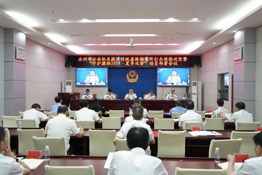 湖南日报·新湖南客户端6月4日讯(通讯员 景轩)6月3日,永州市公安局召开全市公安机关提升传统盗抢骗案件打击效能攻坚暨“守护潇湘2024•夏季攻势”动员部署会。永州市人民政府副市长、市公安局局长夏葛桉出席会议并讲话。