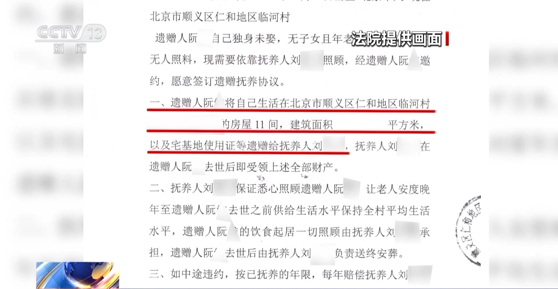 北京市顺义区人民法院民三庭法官 张莉:我们看阮先生的视频也好,村里的那些见证人的证人证言也好,他有行为能力没有什么问题。第二个也不违反什么强制性法律规定,因为他毕竟是处分的都是他自己的财产,也不涉及侵害他人利益的问题,所以说他这个协议从法律上而言肯定是合法有效的,我们肯定是要认可的。