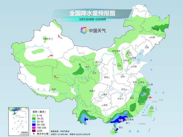 今明天(6月5日至6日)广东、广西降雨会有所减弱,但部分地区仍有中到大雨,局地暴雨或大暴雨。同时华北、东北一带多阵雨或雷阵雨,局地可能伴有强对流天气。在降雨和冷空气的影响下,北方气温会出现波动,江南大部、华南北部等地也因频繁的降雨气温较常年同期偏低。