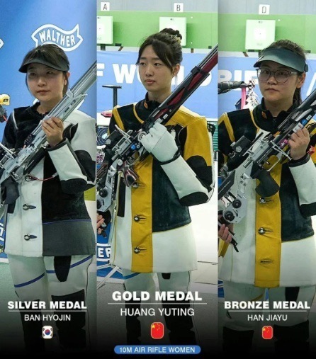 在男子十米气步枪决赛中,中国小将盛李豪以254.5环的成绩打破世界纪录夺冠。女子十米气步枪决赛,17岁的黄雨婷凭借最后两枪的稳定发挥,以0.1环的优势实现逆转,最终以252.7环的成绩夺冠,另一位中国选手韩佳予获得铜牌。