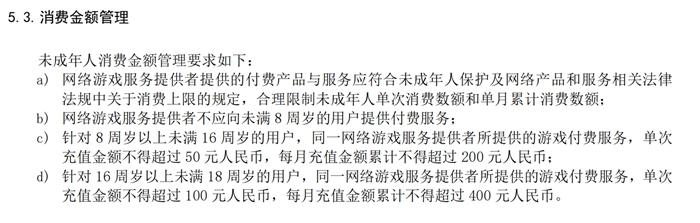 除了针对市场上的争议点,“团标”对一些未成年人玩游戏及消费问题也做了界定。例如,网络游戏服务提供者不应向未成年人提供与其民事行为能力不符的付费产品和服务,且不应向未满8周岁的用户提供付费服务。