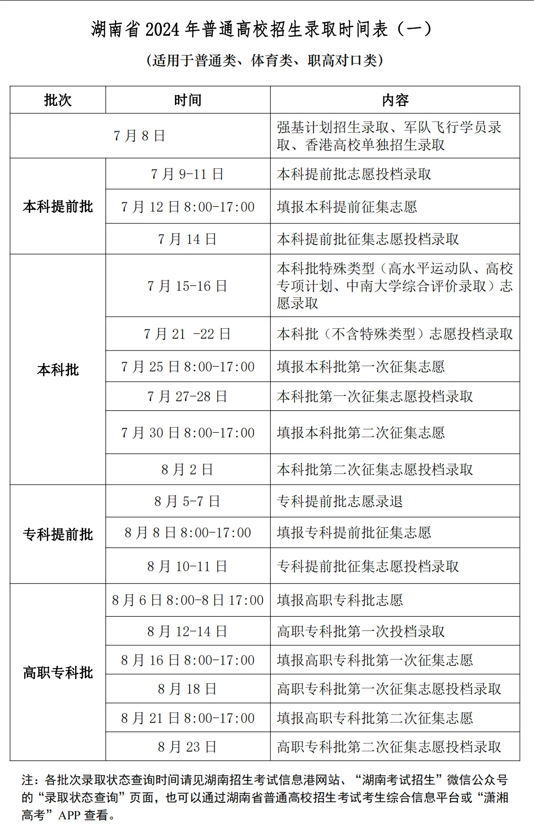 @2024年湖南高考生,填报志愿及录取时间表请收藏!