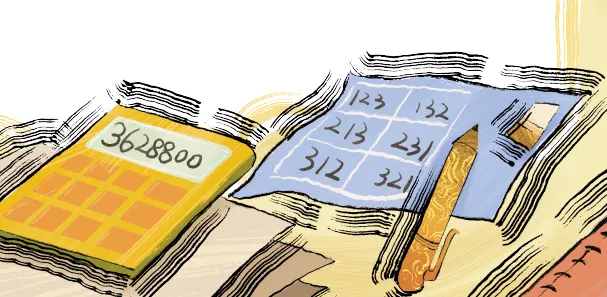 “这还远远不够。”数学老师一边讲,一边用笔计算起来,“我们先假设 3 个人去用餐,排列的次序就是 6 种,即 123、132、213、231、312 和 321。再假设 4 个人去用餐,排列的次序可以这样排列:第 1 个人坐着不动,后面的 3 个人就要变化 6 次,像 3 个人去用餐那样。那么,当 4 个人都轮流作为第 1 个坐着不动时,总的排列次序是 24 种。”