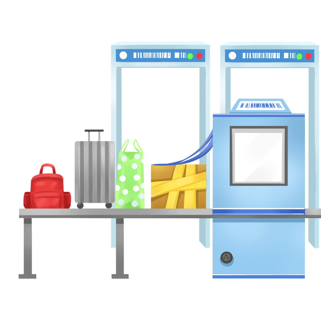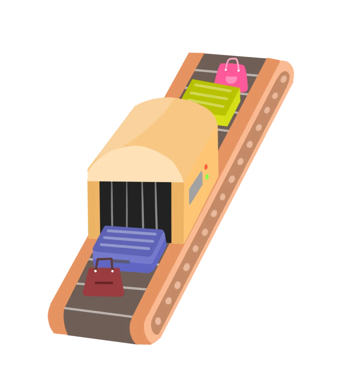 X射线行包检查系统简称行包安检仪,是借助于输送带,将被检查行李送入X射线检查通道而完成检查的电子设备。当行李通过传送带进入X射线检查通道时,会产生触发信号,使X射线源发射X射线束,X射线穿透行李,通过成像系统呈现行李内部物品,安检员通过屏幕上呈现出的不同颜色和轮廓来判断是否携带违禁物品。