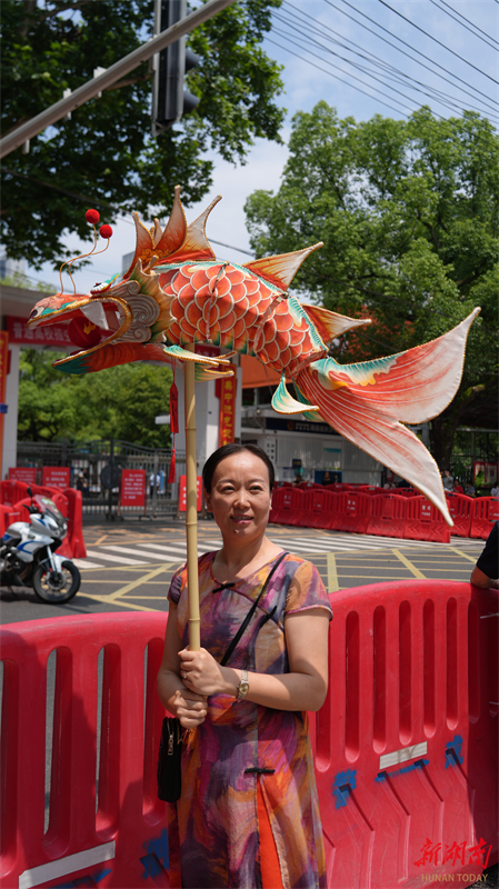 湖南日报6月7日讯(全媒体记者 刘镇东 通讯员 梁健愉 图/视频 顾荣 刘丰 刘文 易思源)“希望我的女儿坚定自信,勇敢向前,妈妈永远支持你!”6月7日11时10分,距高考首场考试结束还有20分钟,长沙市民陈女士在湖南日报社教育工作室“许愿墙”中写下这一美好祝愿,她手中举着鱼龙灯格外引人注目。