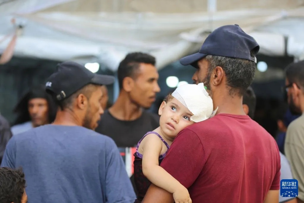 这是6月8日在加沙地带中部努赛赖特难民营拍摄的伤员。新华社发(马尔万·达乌德摄)