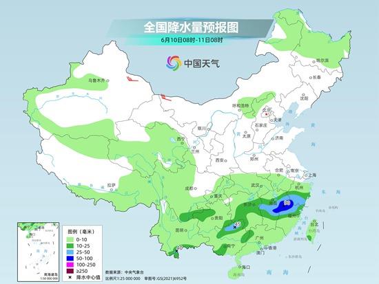 具体来看,中央气象台预计,今天,黑龙江东部、吉林东北部、青海南部、四川南部、云南北部和南部、贵州东南部、广西、广东中北部、湖南南部、江西大部、安徽南部、福建大部、浙江中南部、台湾岛等地部分地区有中到大雨,其中,浙江南部、福建北部、云南东南部、广西西南部和东北部、广东北部等地局地有暴雨。