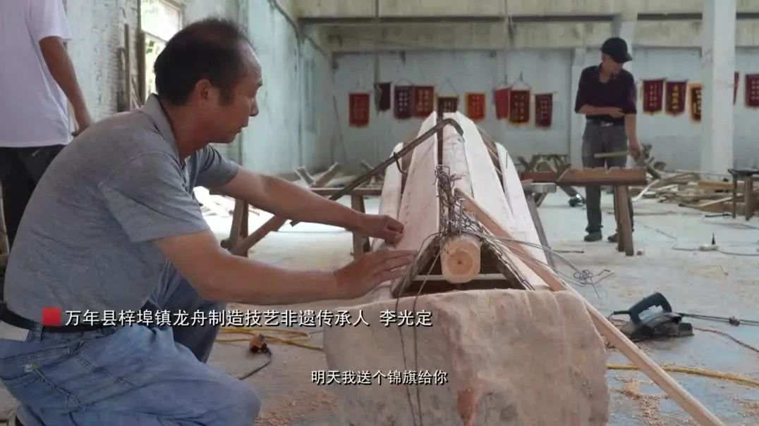 梓埠自古水运发达,舟楫往来。村民李光定从小钟爱龙舟制造,拜师学艺后便是五十载守艺生涯。