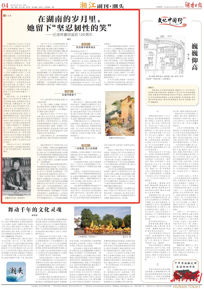 2024年6月10日,是林徽因诞辰120周年。回望她在湖南的时光,那“坚忍韧性的笑”,每每浮现眼前。