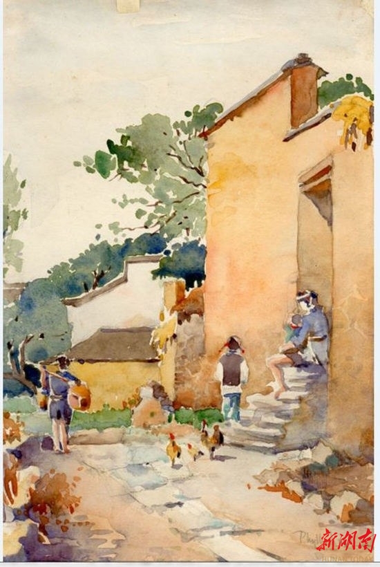 林徽因水彩画《故乡》。