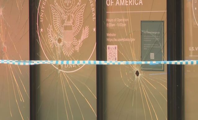 新南威尔士州警方表示,当地时间10日凌晨3时左右,一名手持锤子的人破坏了美国驻悉尼领事馆大楼,9扇窗户被损坏,大门也被涂鸦。