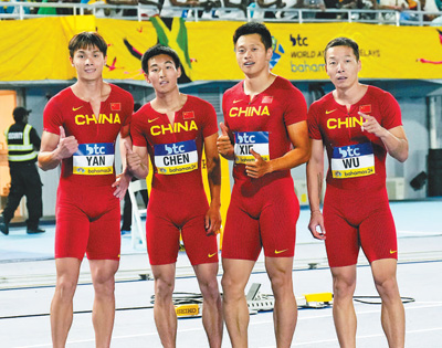端午节前夕,就在人们准备享受假期之时,中国男子接力队的队员们已经踏上了远赴欧洲的航班,在巴黎奥运会之前进行最后阶段的拉练备战。奥运会的入场券来自于当地时间5月4日,巴哈马拿骚的世界接力赛男子4×100米接力预赛赛场,中国队牢牢守住了次席的位置,顺利晋级决赛的同时也拿到了巴黎奥运会的参赛资格。再将时钟拨回到2023年10月3日,杭州奥体中心体育场“大莲花”内,中国队在最后阶段反超日本队,夺得了亚运会男子4×100米接力的冠军。