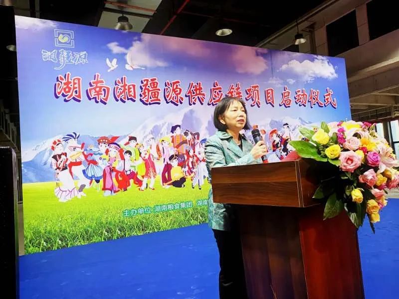 湖南粮食集团党委委员、董事、副总裁邓建平也上台发表热情洋溢的讲话。他表示作为综合性大型粮食企业,湖南粮食集团实力雄厚,经营规模大,产业化水平高,米、面、油等产品多元化发展,营销网络覆盖三湘四水,辐射全国。与湘疆源携手合作,共同推进两地特色优农产品交易往来,能促进两地农业产业升华,带动两地经济增长。