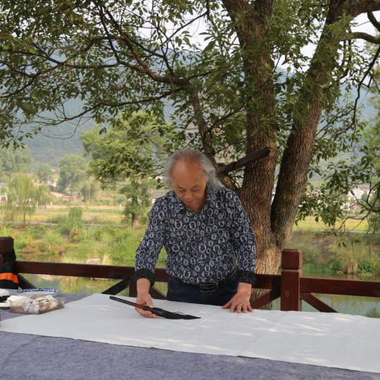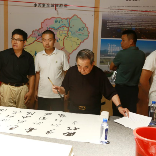 仪式同时开展了爱心书画捐赠活动,数十名来自潇湘齐白石艺术研究院和湖南省岳麓诗社的著名书画家现场创作了书画作品并全部捐赠给了田心村。赵焱森院长表达了对小河乡新农村风貌,美好建设成果的支持与肯定。村里风景如画,环境优美,这片曾承载着革命先辈奋斗的红色土地,更是绿水青山的画里河乡,也希望用翰墨留住这份美景,和大家分享传播“世外原乡,画里小河”。