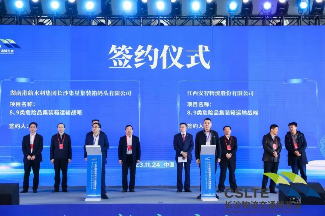 来自哈尔滨、蚌埠、衡阳、郴州、德阳、娄底、湘潭、株洲等兄弟城市政府领导和代表团、湖南省相关行业协会共同参会交流,共同见证了湖南港航水利集团下属长沙集星集装箱码头有限公司和江西安智物流股份有限公司签约等活动。