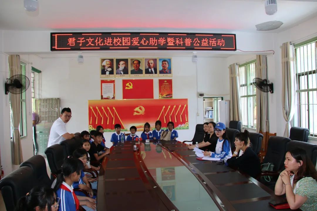 6月23日,2022年湖南省社科普及主题活动周“喜迎二十大·奋进新征程”——君子文化进校园爱心助学暨科普公益活动在宁远县五龙山中心校举行。宁远县教育局副局长雷敏,爱心企业家彭曼妮、夏珮,湖南省茶叶博物馆专职讲师田彬彬,湖南省君子文化研究会副秘书长刘俐、周芳莲,以及五龙山中心校师生近三百人参加活动。