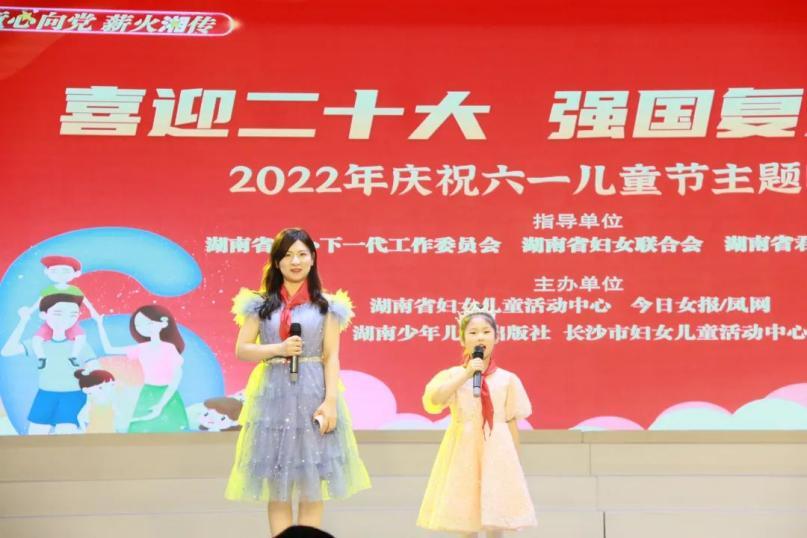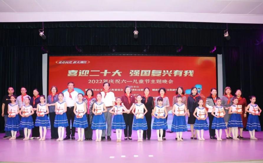 为深化“少年儿童心向党”主题教育实践活动,引领少年儿童在新时代新征程上,共同唱响“请党放心、强国有我”的时代强音,用颗颗红心喜迎党的二十大胜利召开,2022年5月29日,湖南省关心下一代工作委员会、湖南省妇联、湖南省君子文化研究会指导,湖南省妇女儿童活动中心、今日女报/凤网、湖南少年儿童出版社、长沙市妇女儿童活动中心联合主办“喜迎二十大 强国复兴有我”——2022年庆祝“六一”儿童节主题晚会。省政协原副主席、省关工委副主任袁新华,省高院党组副书记、副院长张兰,湖南省妇联党组成员、副主席张媛媛,省君子文化研究会会长张光友,省纪委监察厅原副厅长李利君,省君子文化研究会执行会长魏忠胜等省直有关部门嘉宾、研究会特邀专家等出席活动并观看了演出,与孩子们一起欢庆“六一”。