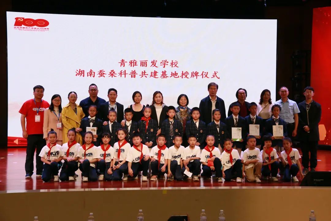 活动上,湖南省君子文化研究会为学校赠送了《中华少年君子文化》丛书,希望学生了解热爱中华优秀传统文化,通过系统地学习君子文化,从小培育君子人格,担当民族时代重任。湖南省蚕桑科学研究所为学校授牌湖南蚕桑科普实践共建基地。
