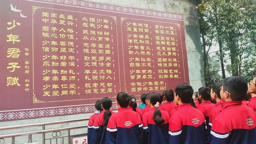 为了全方位推进君子文化教育 ,该校还安排了经典晚诵内容,即每天晚辅导之前十分钟是全校学生同读经典时间;同时在全校学生中推广《君子谣》手语舞,并将其搬上了阳光体育大课间的活动舞台;定期组织学生参观学习“君子墙”上的内容,让学生身临其境多感官感受君子文化的魅力;组织君子文化大讲堂听课 笔记评比活动,进一步提升学生的学习热情和积极性;开展君子文化知识竞赛,作为期末学生综合素质评价的依据之一 。