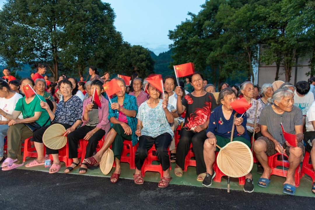 “领航的旋律”宣讲在《茶娃娃》节目的表演中拉开序幕。该节目分为“旗的指引”“梦的感召”“路的拓展”“力的源泉”“美的交响”五大篇章,选取了最能代表每个时代的“最强音”,透过那些紧紧扎根人民的歌曲,带领甘溪村党员群众触摸时代变迁的脉搏。从《国际歌》,到《我们都是追梦人》,一首首耳熟能详的歌曲,唤起了乡亲们对100多年来中国人民紧跟中国共产党步伐改天换地的集体记忆,通过极具感染力的经典音乐和语言艺术,生动讲述党的光辉历程,百年大党的丰功伟绩,为乡亲们带来了一场视听盛宴,让党的二十大精神“声”入人心。