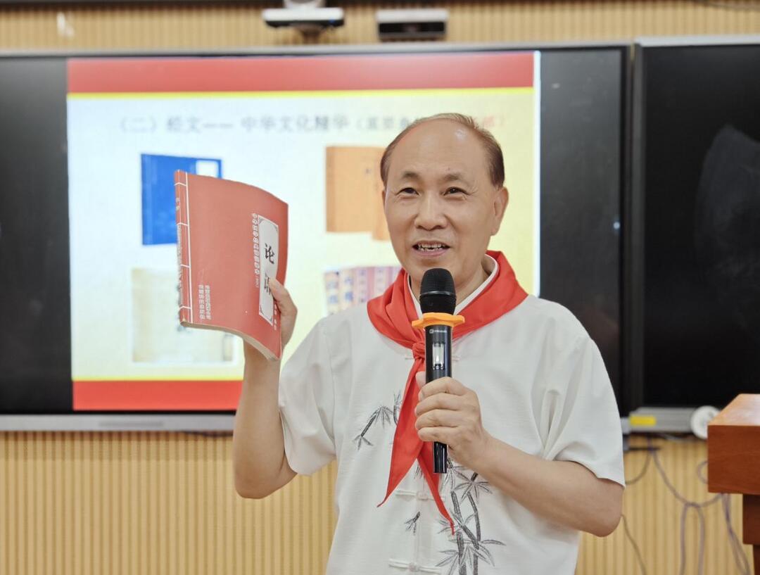 随后,湖南省社会主义学院原巡视员、省君子文化研究会专家顾问刘孝听进行了精彩讲座。他以“认真学好传统文化,争做文化传承先锋”为题,倡导老师们厚植君子情怀,强化对学生的中华君子品格教育,立德树人,培根铸魂,争做优秀传统文化传承先锋。他的讲座深入浅出,引人入胜,为大家带来了一场别开生面的文化学习大餐。