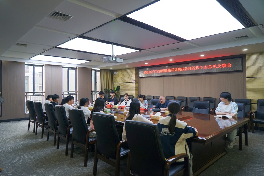 教务处处长熊美珍,督导处处长王继山,马克思主义学院院长李纯斌、副院长李菡和部分思政教师参加反馈会。会上,隆平介绍与会人员,并对专家的到来和指导表示欢迎和感谢,李纯斌从学校马克思主义学院的基本情况、主要工作和下一步计划3个方面向与会领导和专家进行汇报。隆平从学校对马克思主义学院建设和思政课教学的重视,按要求配齐思政课教师和经费保障等方面向与会领导和专家作进一步介绍。
