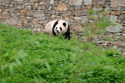 在中国大熊猫保护研究中心卧龙神树坪基地,当通往外舍的小门打开后,“福宝”从内舍缓缓走出,在新家院子里好奇地四处张望、嗅闻,在探索了一圈以后,准确找到了饲养员精心准备的食物,随即悠闲享受美味的竹笋。