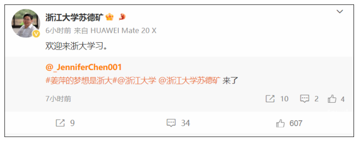 刚刚,浙江大学苏德矿教授转发姜萍的相关报道,并表示“欢迎来浙大!”