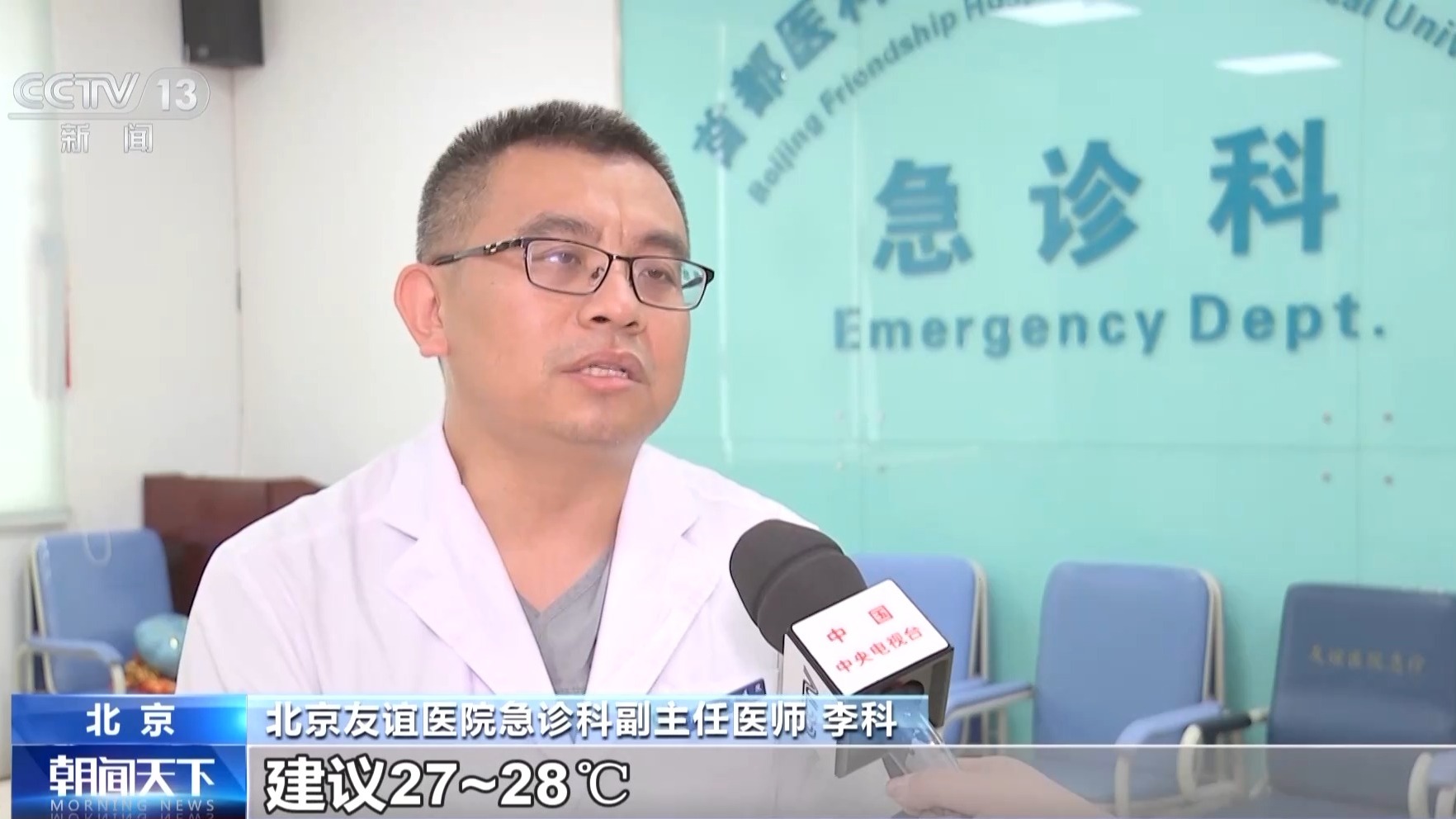 北京友谊医院急诊科副主任医师 李科:如果身体相对虚弱一些。建议27~28℃。第二个要适当注意通风,三个小时左右要适当开窗通风,保护呼吸道,同时吹空调的时候避免冷风直接吹。