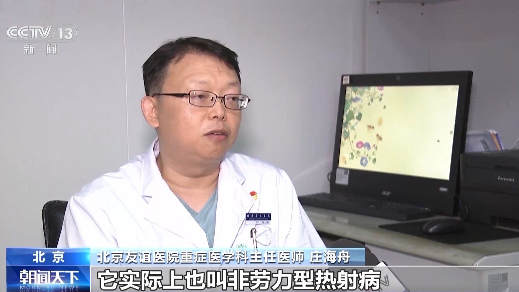 北京友谊医院重症医学科主任医师 庄海舟:一种我们叫经典热射病,它实际上也叫非劳力性热射病,另一种叫劳力性热射病,一般是老年患者、儿童以及有一些慢性疾病,基础的身体状况比较差的这一类病人,由于他本身身体的这种体温调节能力下降,它就更容易导致热射病发生。