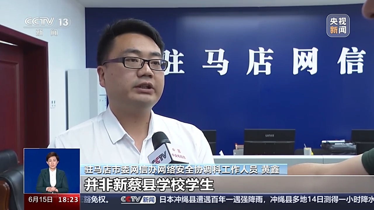 驻马店市委网信办网络安全协调科工作人员黄鑫:该信息不仅对新蔡县某学校造成不良影响,并且严重影响未成年人身心健康。