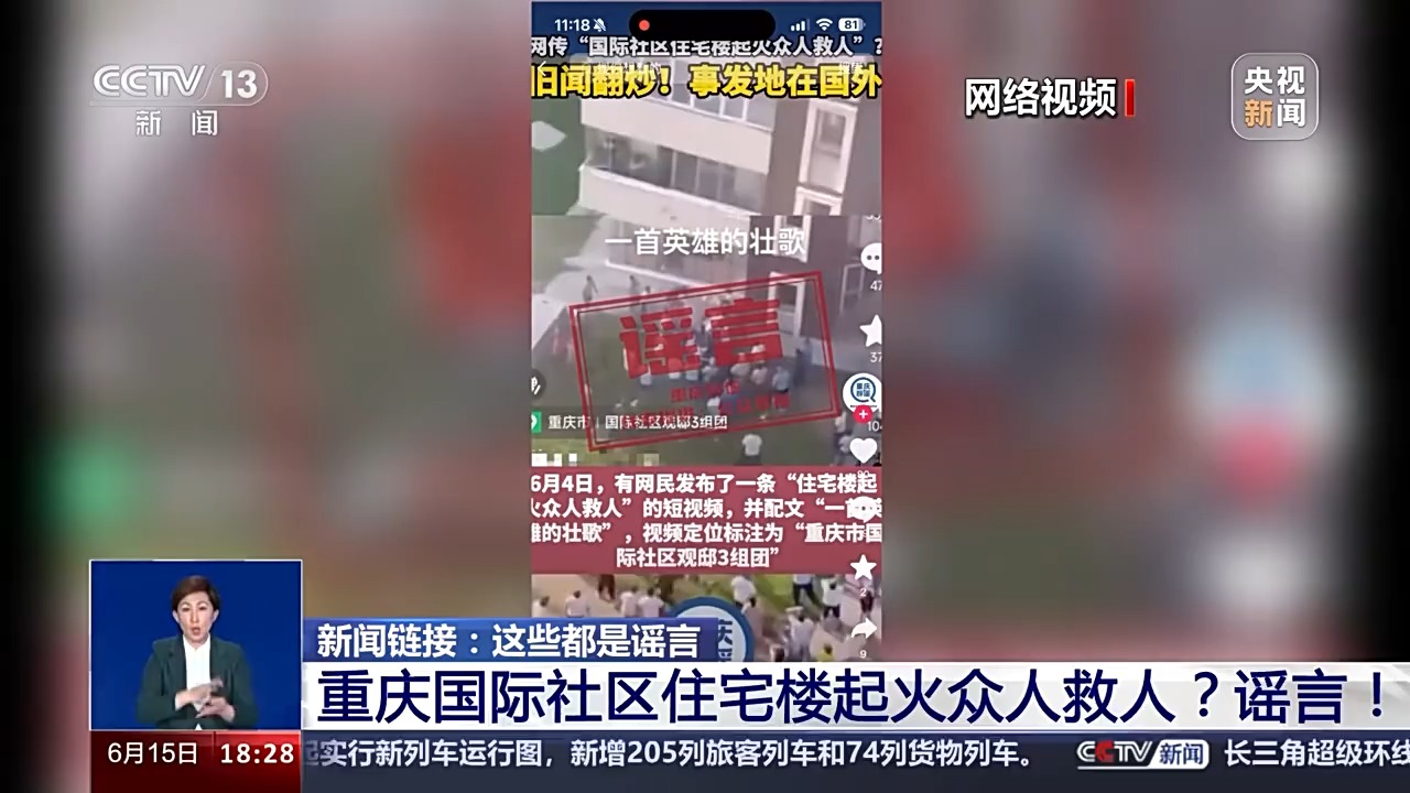 6月4日,有网民发布了一条“住宅楼起火众人救人”的短视频,并配文“一首英雄的壮歌”,视频定位标注为“重庆市国际社区观邸3组团”。
