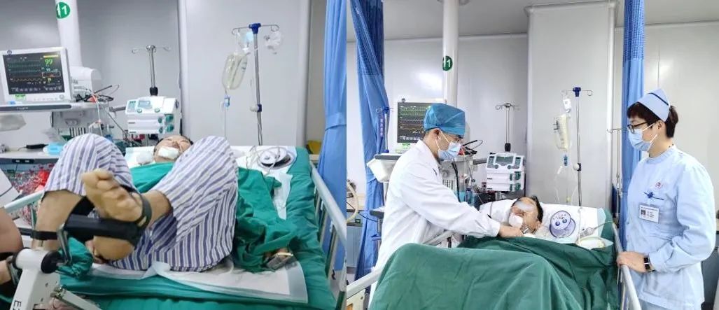“我自己都不敢相信,与死神擦肩而过!感谢医护人员的全力救治。”在EICU,医护人员积极开展容量管理、镇静、镇痛、持续正压通气,帮助患者渡过急性休克期、创伤性ARDS、右肺不张、水电解质紊乱等难关。副护士长常丹带领护理团队进行肺康复指导,呼吸训练、咳嗽训练、卧式自行车训练指导等。在医护人员的共同努力下,患者的肺功能明显改善,在拔除气管插管的第二天即可下床活动。目前患者已转至普通病房进一步治疗。