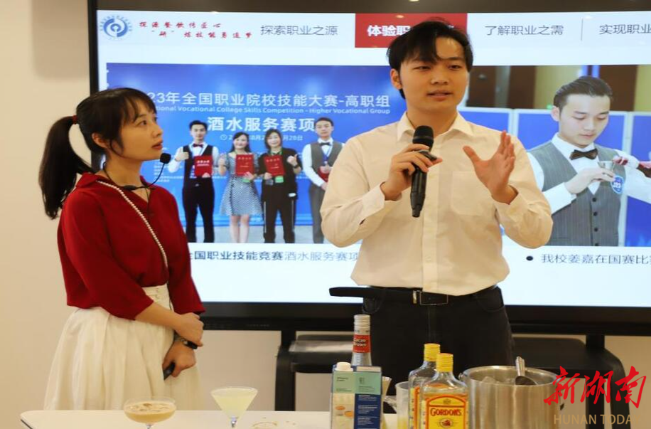 湖南日报·新湖南客户端6月17日讯(通讯员 吴春红 谷冲)一阵阵四溢的酒香,在长沙商贸旅游职业技术学院餐饮实训室飘荡,餐饮智能管理2335班学生上了一堂有“味道”的思政课。6月14日,该校马克思主义学院教师李斯瑶、湘菜学院教师曹柳齐上阵,带领学生穿越餐饮文化历史长河,步入一场奇妙基于专业认知的探索之旅。