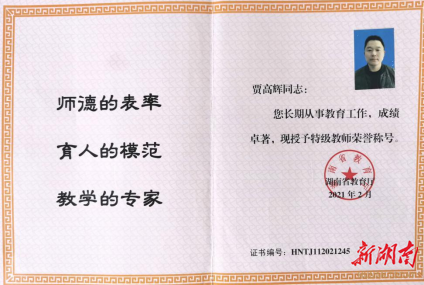 1972年7月,贾高辉出生在龙山县贾市乡一个偏远的小山村。受当乡村教师的父亲影响,他从小就确定了自己的理想——当一名教书匠。